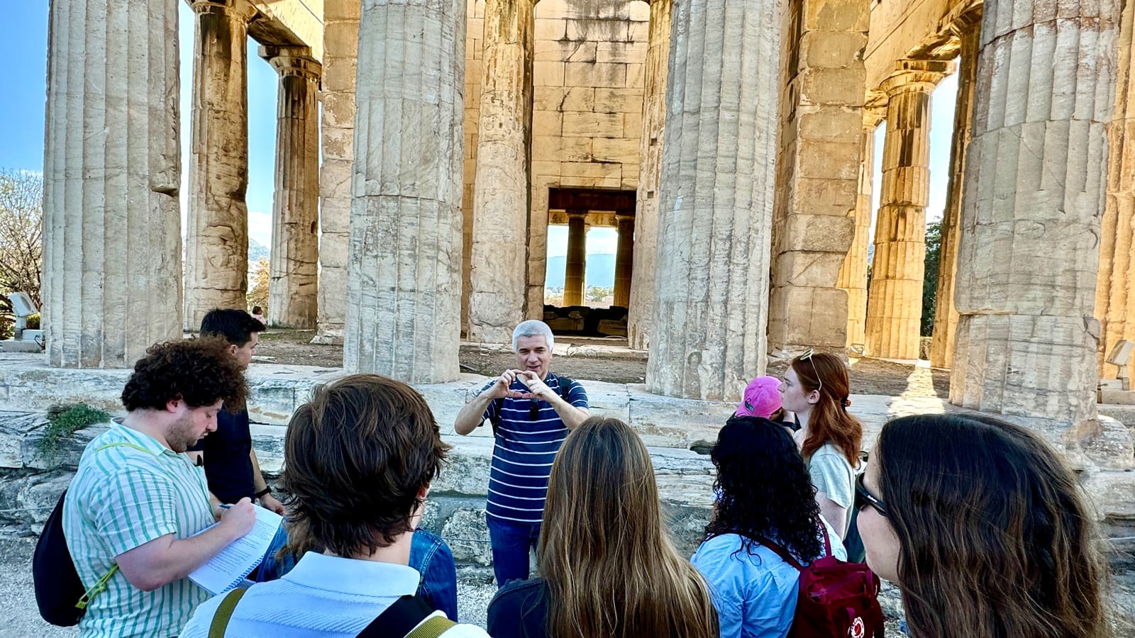 “It is important to have creative ways of approaching what you are doing,” he said. “The hardest problems are the ones that require you to think historically and holistically about the project.” This interdisciplinary approach was the inspiration for Glišić and Holzman’s “Historical Structures” course, which introduces students to engineering and archaeological principles in tandem. The detour in the Roman Agora in their fall 2024 trip was one of many stops at archaeological sites from Delphi to the Peloponnesian peninsula.